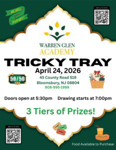 Warren Glen Academy is holding our Sixth “Tricky Tray” on Friday, April 24, 2026 to raise funds needed to support our school and students throughout the year. Warren Glen Academy is a non-profit private school located in Bloomsbury, New Jersey, serving the needs of children and adolescents with Emotional Disorders, Learning Disabilities, Multiple Disabilities, Autism Spectrum, Developmental Delays, Health Impairments, Speech and Language Impairments, ADD and ADHD. We need your help in making our Tricky Tray a success!